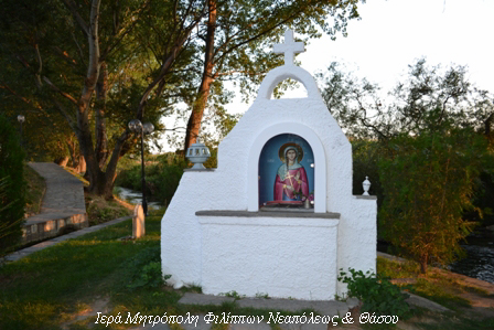 In the sacred place of her baptism, on the adjacent riverbank of Zygakti, the inspiration of our Bishop Prokopios established an outdoor Cross-shaped Baptistery into the actual river similar to those preserved in the early Christian basilicas of Philippi.