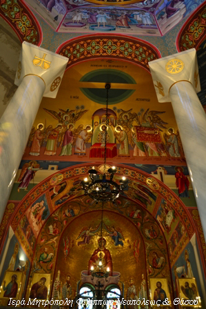 6. The unique for their compositions the Hagiographies on the base of the octagon dome. They recount the eight (8) baptisms from the Acts of the Apostles and among them the baptism of the Apostle Paul by Ananias in Damascus as well. In addition part of the hagiography of the roof, which was recently placed, which narrate the events that took place at Philippi after the vision and the arrival of Paul like the preaching in Zygakti River to the women, the baptism of Lydia, the imprisonment of the Apostles, the earthquake etc. The Hagiographies of the roof are now being actively pursued as well as those of the narthex of the holy Baptistery on whose floors there is a unique mosaic, which shows the tour of Paul in Philippi, Veria, Athens and Corinth.